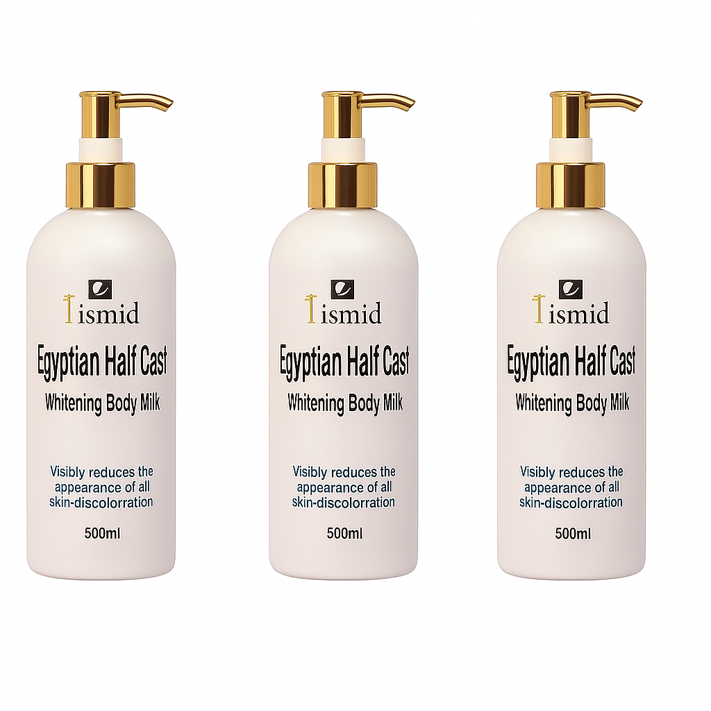 Experience luxurious radiance with the Bismid Egyptian Halfcast Whitening Lotion (3PCS) — a premium brightening skincare set designed to help reveal a more even-toned, glowing complexion.