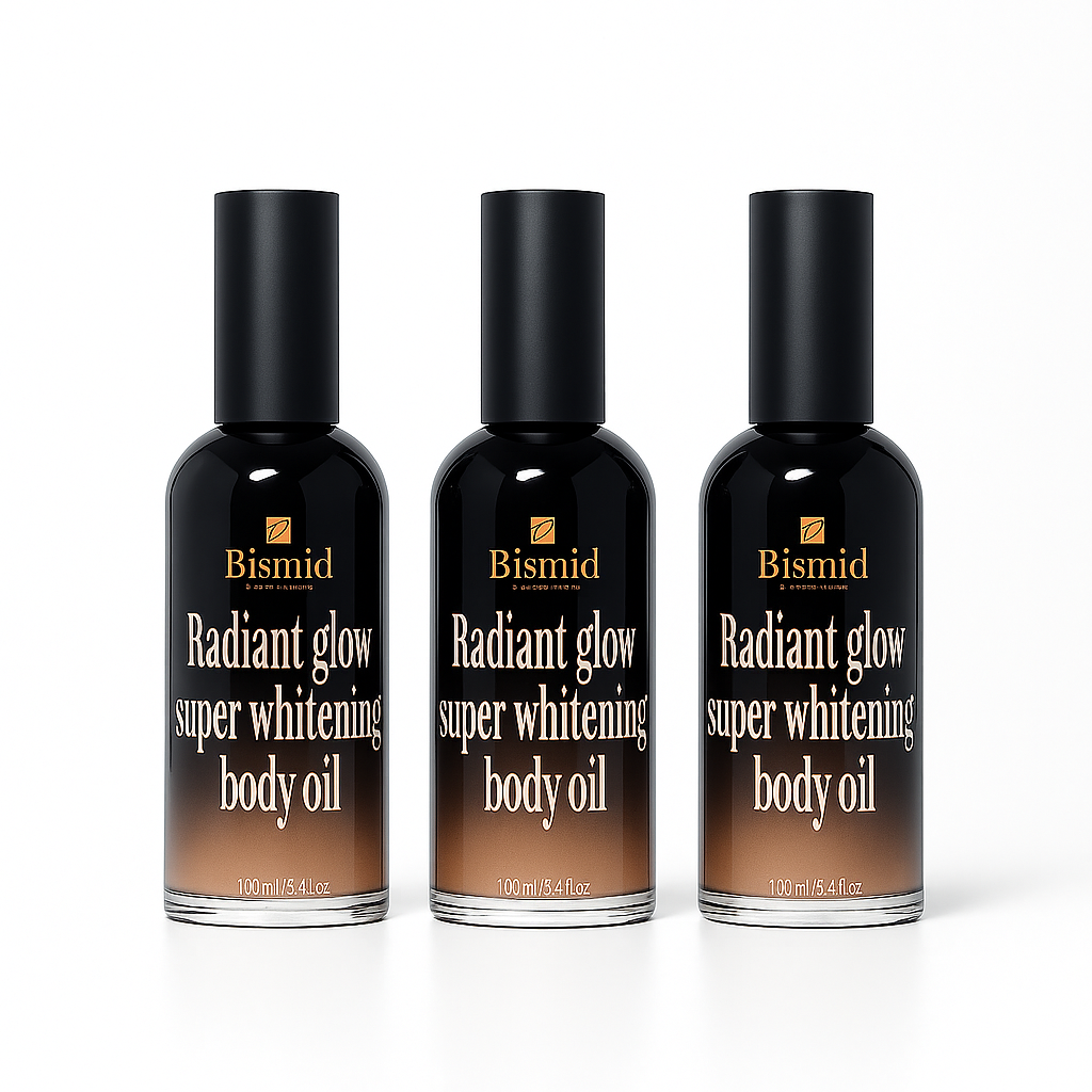 Bismid Radiant Glowing Oil 3pcs is a premium glow-enhancing body oil set designed to nourish the skin, improve softness, and reveal a more radiant, smooth, and hydrated appearance. This luxurious oil absorbs quickly, leaving skin silky and luminous without greasy buildup — perfect for daily self-care and long-lasting hydration.