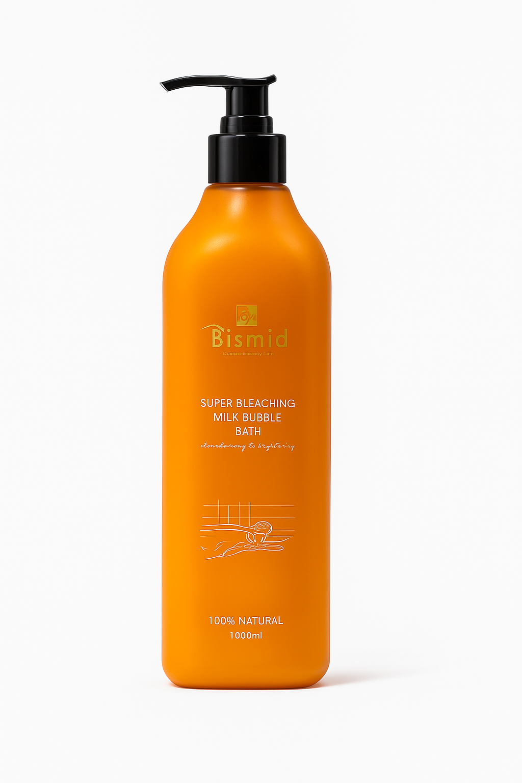 Transform your bath time into a luxurious skincare ritual with Bismid Super Bleaching Bubble Milk Bath. This indulgent body wash is enriched with natural milk, sweet almond oil, and vitamins, creating a creamy lather that gently cleanses while supporting the appearance of radiant, smoother, and more even-looking skin.