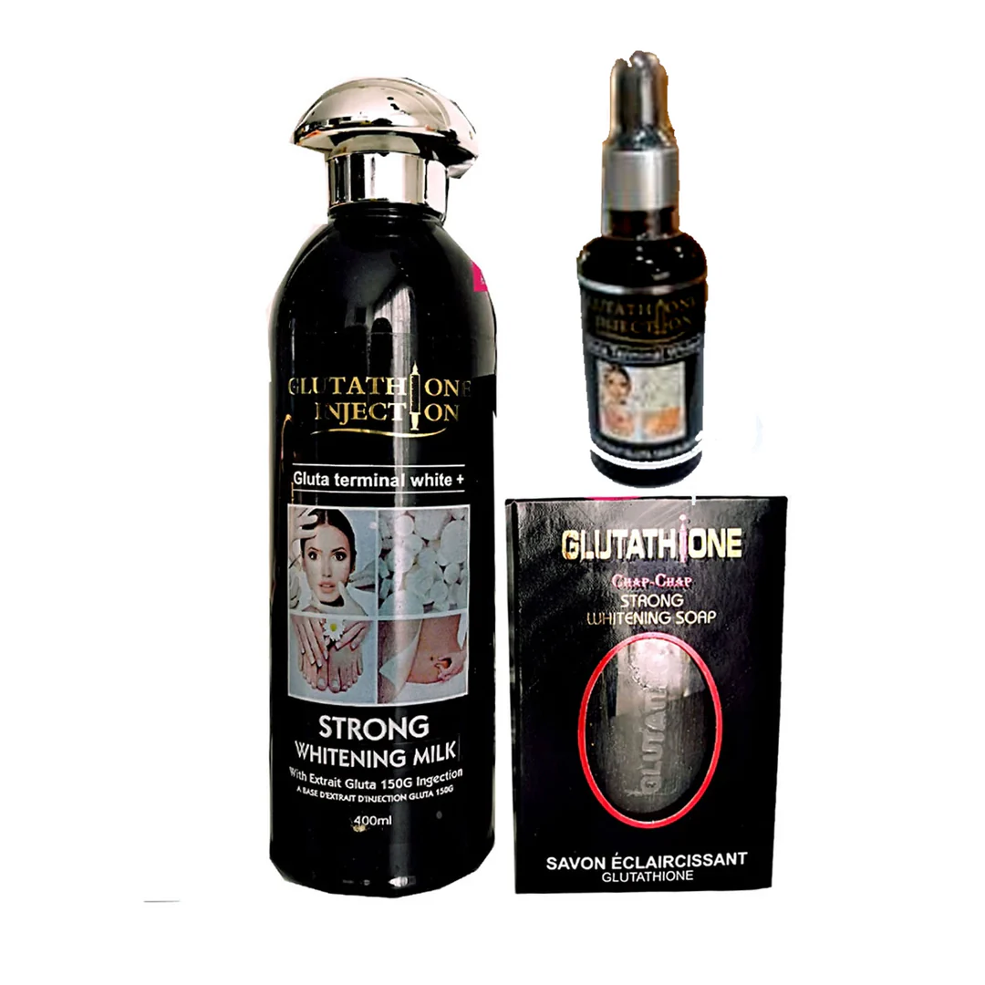 The three products follow a deliberate order that accelerates results. First, the Cleansing Soap clears surface buildup and dulling debris. Next, the Glutathione‑rich Serum delivers concentrated brightening actives directly to pigmented areas, interrupting excess melanin production and encouraging cell turnover. Finally, the Hydrating Lotion seals in active ingredients, nourishes the skin barrier, and helps prevent new discoloration from forming. Used consistently, you’ll see gradual fading of dark spots and a smoother, more radiant body tone.