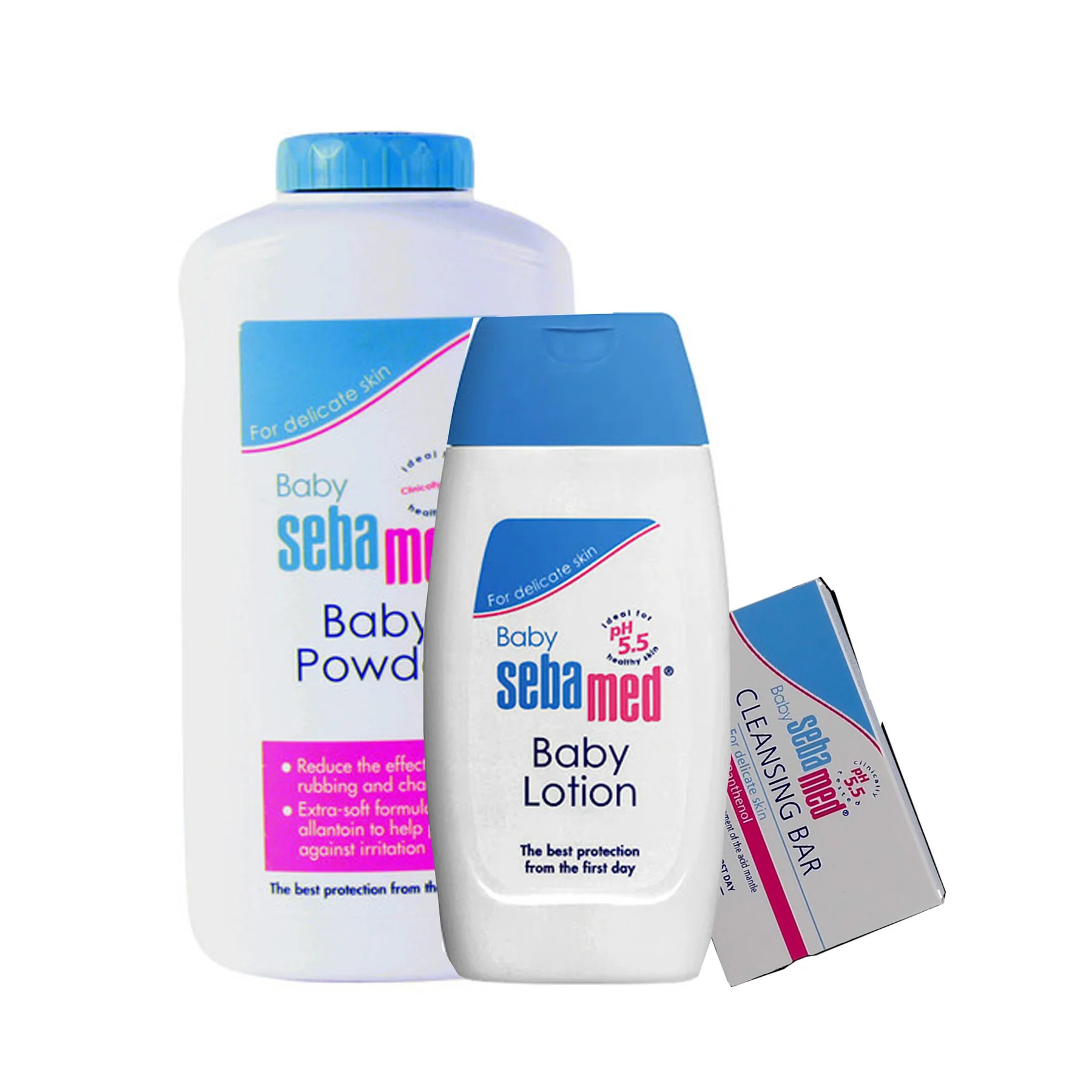 Your baby’s skin is softer and more susceptible to irritation than an adult’s. Even a tiny amount of moisture, friction, or harsh cleanser can trigger redness, chafing, and diaper rash. That’s why preventing irritation matters from day one. The Sebamed Baby 3-piece set—made up of Baby Powder, Cleansing Bar, and Baby Lotion—works in harmony to protect, soothe, and nourish delicate skin without disrupting its natural defense system.