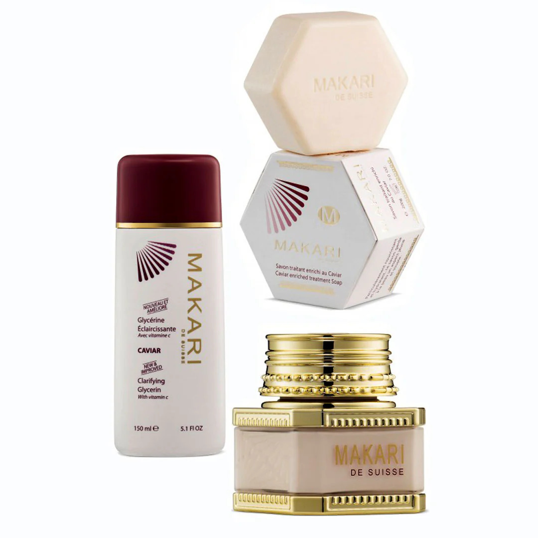 - Moisturize & Protect with the Makari De Suisse Caviar Brightening Cream. Follow with a broad-spectrum SPF 30 each morning to safeguard your newfound glow.