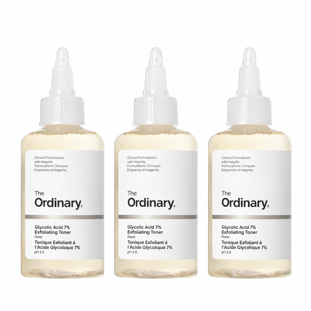 The Ordinary Glycolic Acid 7% Exfoliating Toner (3PCS / 3-pack) is a facial toner bundle formulated for cosmetic exfoliation and routine enhancement. Featuring 7% glycolic acid, this toner helps gently support a smoother-looking texture and a more luminous appearance when used consistently as part of a regular skincare routine.