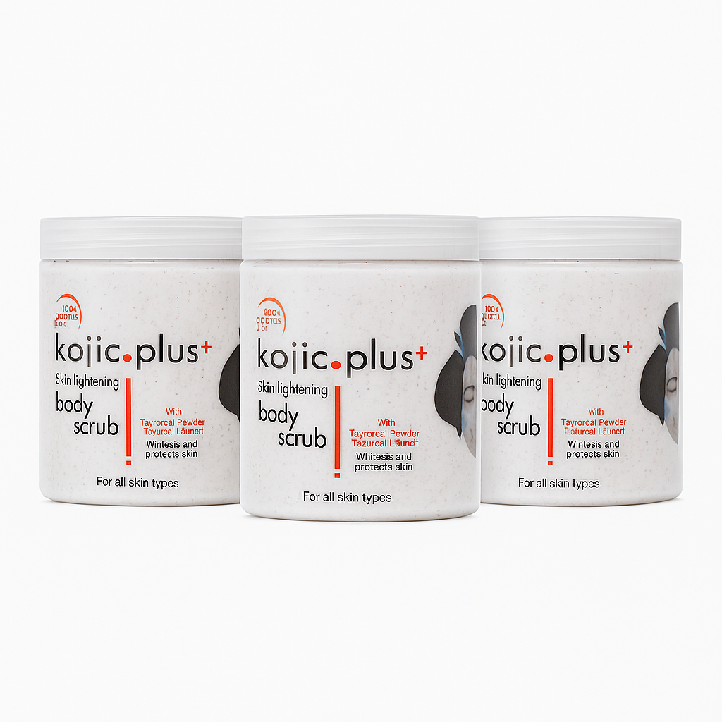 Achieve glowing, even-toned, and radiant skin from head to toe with the X3 Kojic Plus + Body Plus Lightening Face and Body Scrub (3PCS) — the ultimate skin-brightening set designed for visible results.