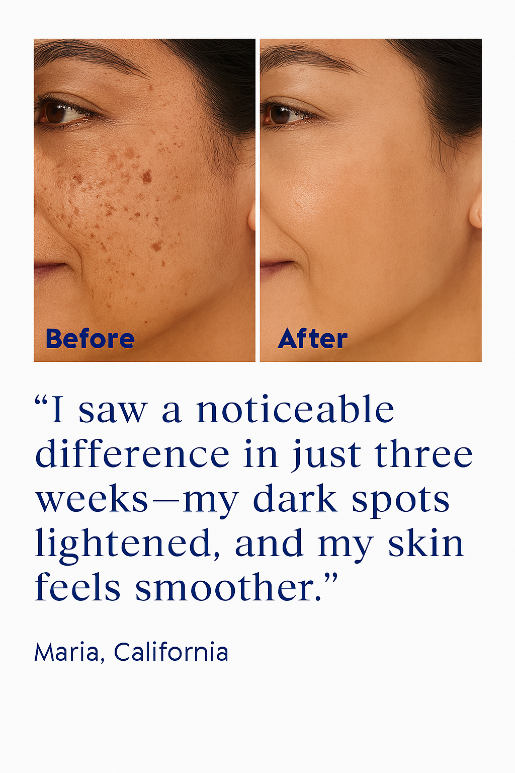 “I saw a noticeable difference in just three weeks—my dark spots lightened, and my skin feels smoother.”